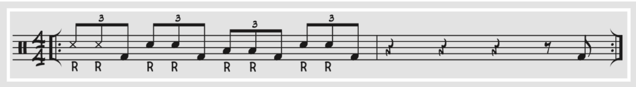 Haynes' creativity with this ISM is seemingly endless; this book will explore three ways Roy develops and alters the phrase. We will manipulate the figure by starting the pattern in different places within the measure (i.e. permutating), placing the pattern on different drums or sound sources (i.e. orchestrating), and "stretching" or "shrinking" the pattern by utilizing various subdivisions like triplets, eighth notes, and sixteenth notes (i.e. subdividing).